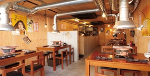 ビニールカーテンから灯りが漏れるオープンな佇まい。 開放感溢れる温かみのある空間♪